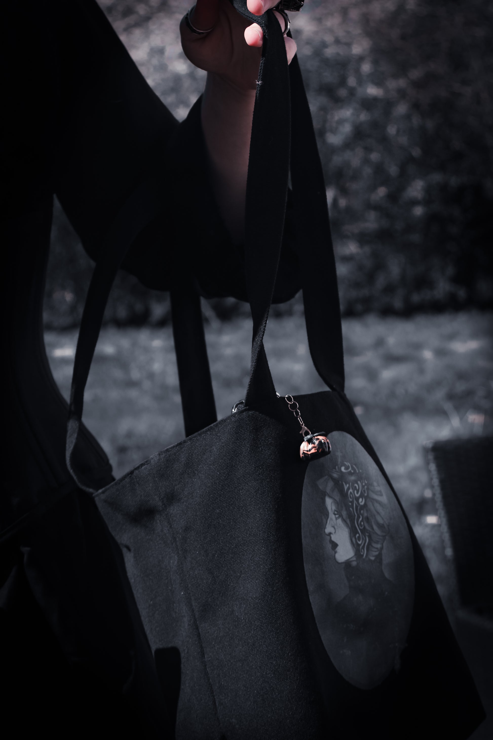 The Mourning Compact Tote is a limited edition treasure - only 5 ever made. Perfect for the busy ghoul who prefers a good tote, it truly blends compact convenience with a touch of dark elegance.